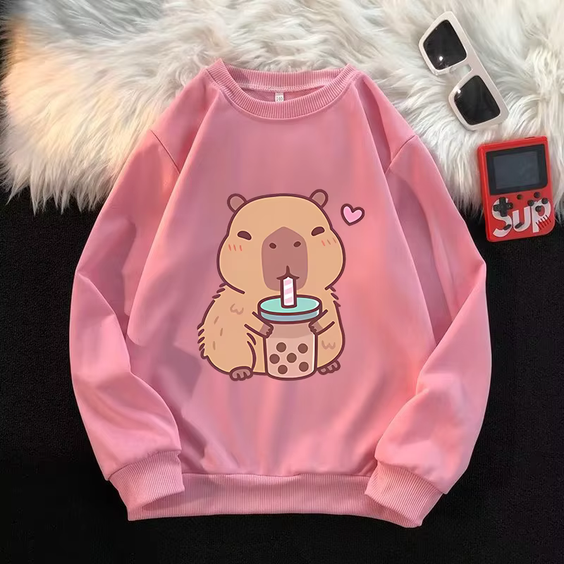 With these stylish cute capybara sweatshirts, your kids can show off their love for animals and anime!
