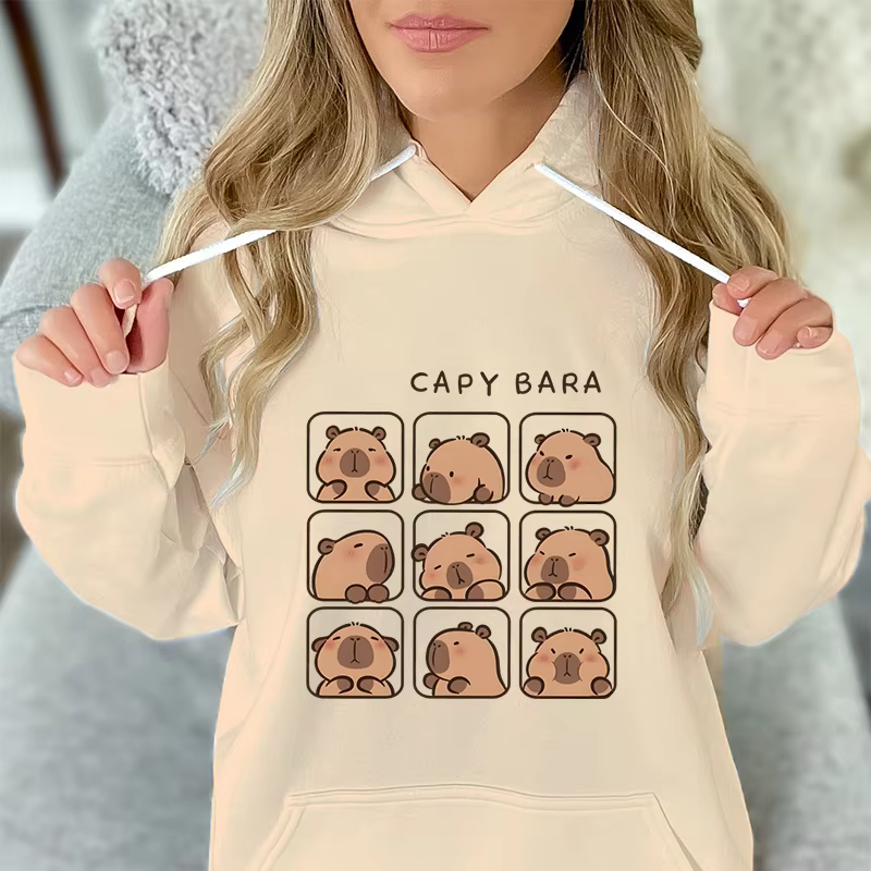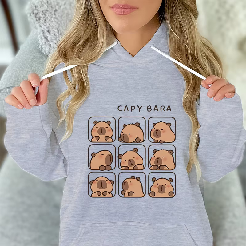 Funny Cartoon Capybaras Printed Men’s Women’s Fashion Casual Hoodies Unisex Adorable Capybara Hoodies for Women as a Capybara Lover Gift