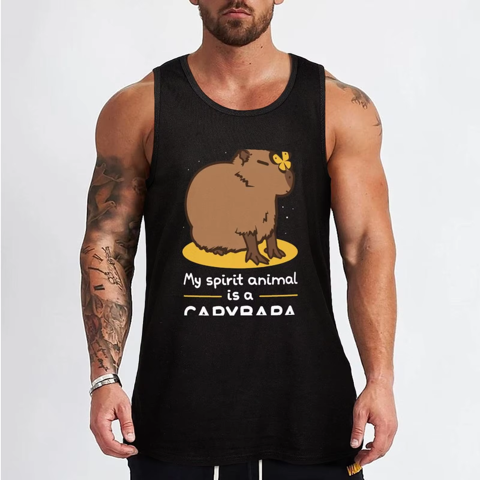 My spirit animal in all forms is a capybara, a tank top, and gym attire perfect for all summers.