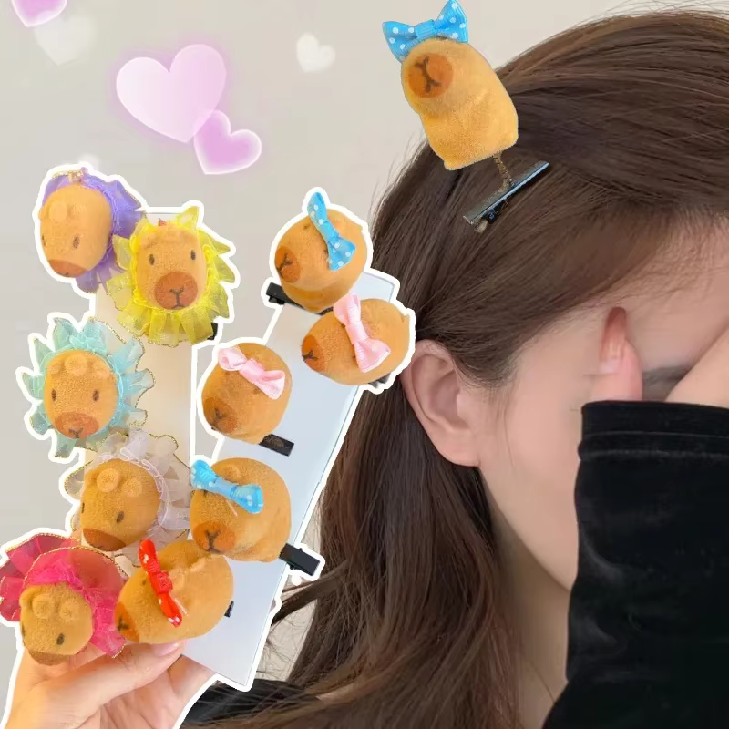 Besides functionality, these various clips have an interesting and funny element to half-up, bangs and ponytail hairstyles. This hairpin set is a must-have for capybara and kawaii lovers, whether it is for fun hair styling or a gift for a child.