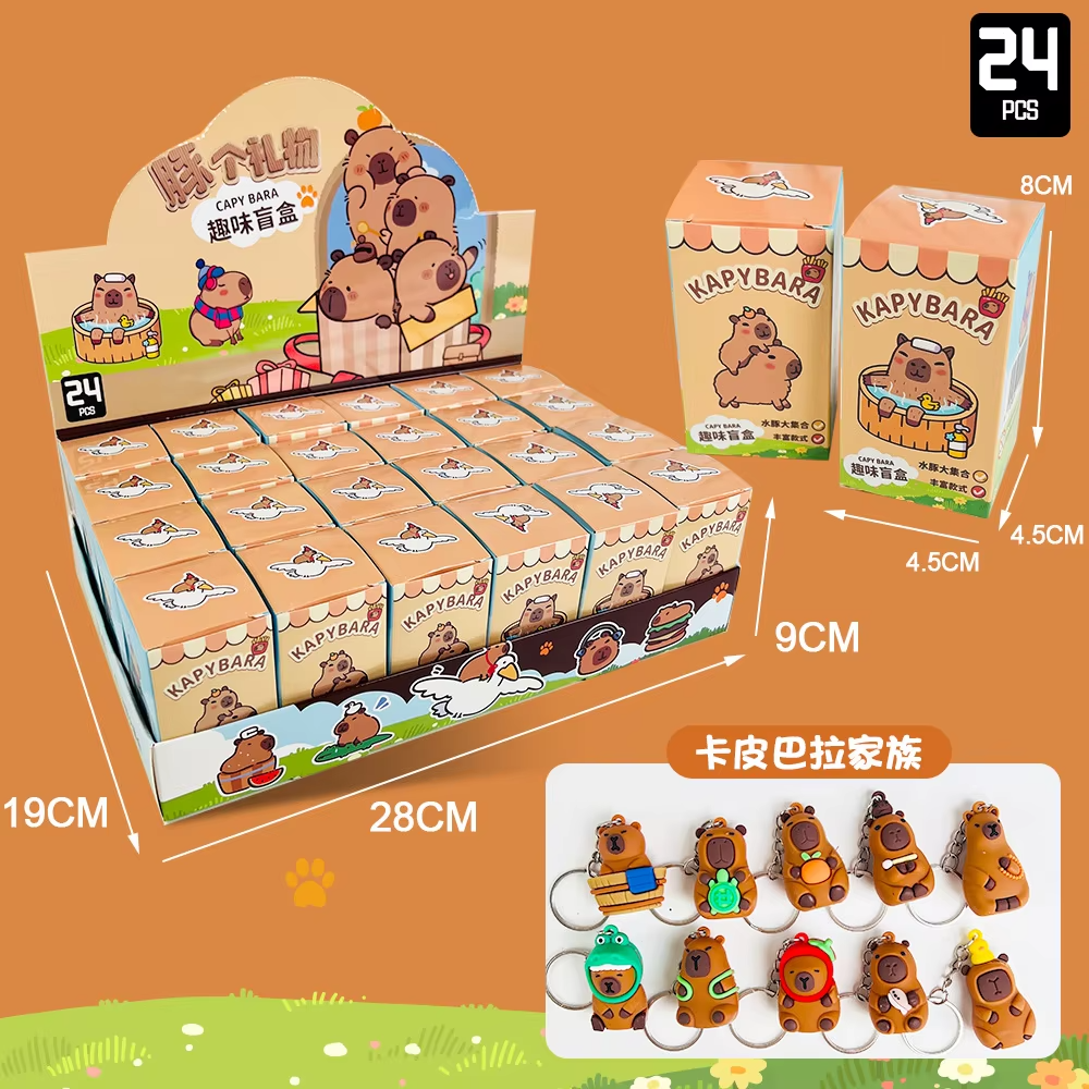 There are 24 pieces available. Backpack Decorations: Capybara Blind Box Keychain Adorable Snot Bear Figure Mystery Box Doll Pendant